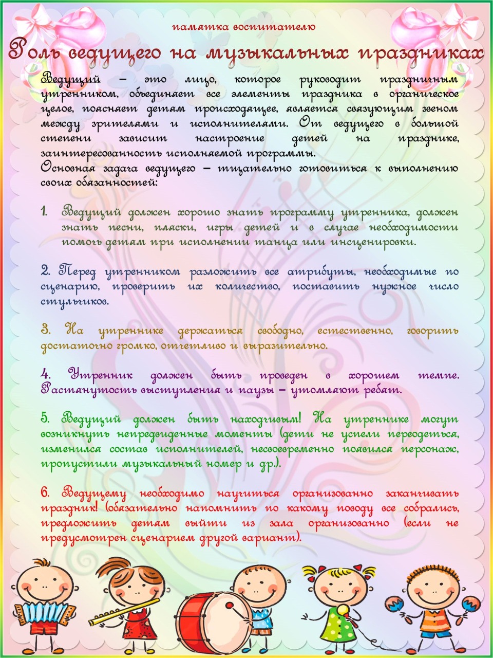 Памятка воспитателю при подготовке и проведении утренника