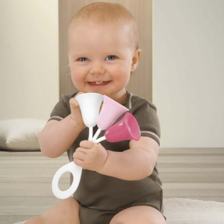 Малыш впервые взял в ручки погремушку. Он еще неосознанно и беспорядочно трясет ею и радуется издаваемым звукам. Это – его первый шумовой инструмент.